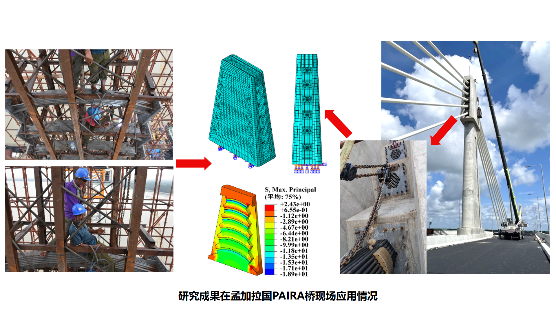 相关研究成果在孟加拉国PAIRA桥主桥三塔斜拉桥施工监控项目、孟加拉国PAIRA桥主桥三塔斜拉桥健康监测系统的开发及应用及杭温铁路义乌至温州段站前四标线楠溪江大桥2×120m斜拉桥施工技术研发及服务项目中均得到了实际应用,应用效果良好,为施工单位直接和间接节约工期60天,节约施工成本约500万元。