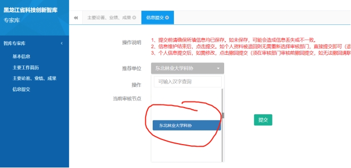 (三)填个人信息“推荐单位”请选择-东北林业大学高校科协。
