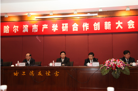 2012年3月1日下午,哈尔滨市产学研合作促进会会长单位联席会议和哈尔滨市产学研合作创新大会在我市道里区友谊宫召开。哈尔滨市副市长张显友、中国产学研合作促进会副会长王建华、市产学研合作促进会名誉会长程道喜等领导参加会议,会议由哈尔滨市产学研合作促进会会长李凯英主持,哈尔滨市科技局、财政局等部门领导出席了会议。我校科学技术研究院常务副院长李凤日教授和大项目管理办公室主任魏焕勇同志参加了本次会议。