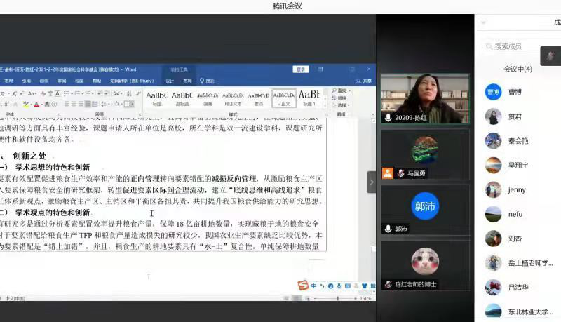 4.多形式,全方位,强化服务与指导。学院充分利用校内外资源,邀请校内外知名专家10余人,从辅导示范到选题论证,再到两轮的评审,做到全程服务。疫情期间,为保证二轮评审的正常进行,学院主管科研副院长亲自组织线上专家一对一评审,并针对农林经济管理的申报老师,特邀教育部农林经济学科评议组专家及秘书长进行专场指导。