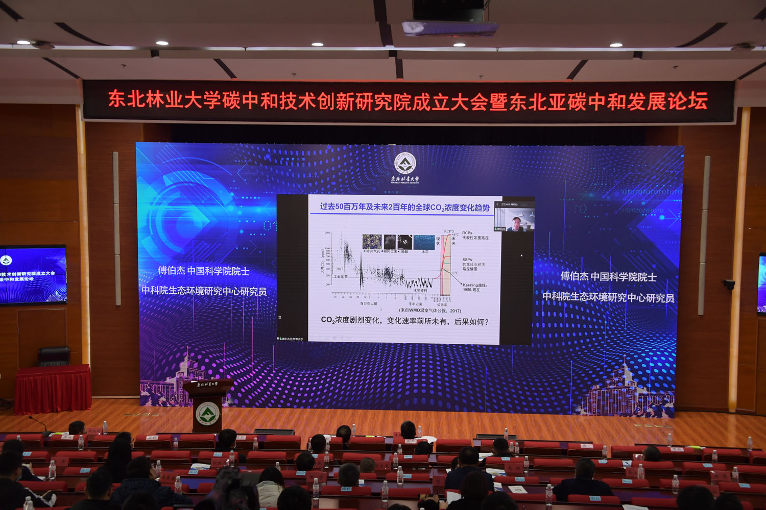11月28日,东北林业大学碳中和技术创新研究院成立大会在成栋楼4楼会议室隆重举行,300余名来自全国林业领域的院士等专家学者与黑龙江省政府、国家林草局等政府领导通过线上线下的形式参加大会。