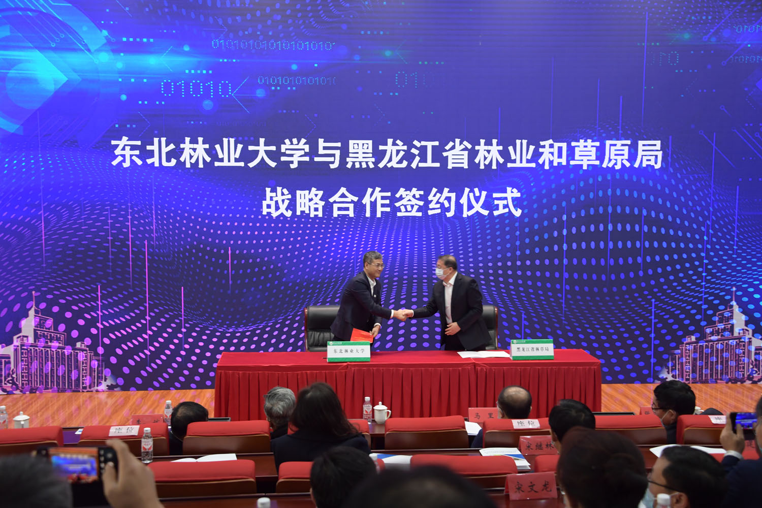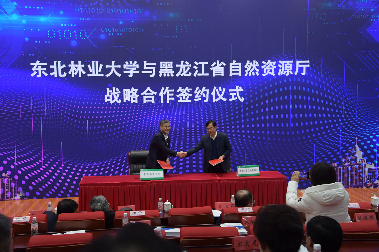 在成立大会上,东北林业大学与黑龙江省生态环境厅、自然资源厅、林业和草原局以及牡丹江市人民政府、伊春市人民政府、伊春森工集团、大兴安岭地区行署、大兴安岭林业集团、中国龙江森工集团签署战略合作协议,学校将与共建单位携手落实碳中和目标任务,全面推进生态强省和低碳、绿色发展,用科技赋能,助力深入打好污染防治攻坚战,为黑龙江省向生态强省转变,为建设碳中和典型示范省份的目标,做出更大贡献。