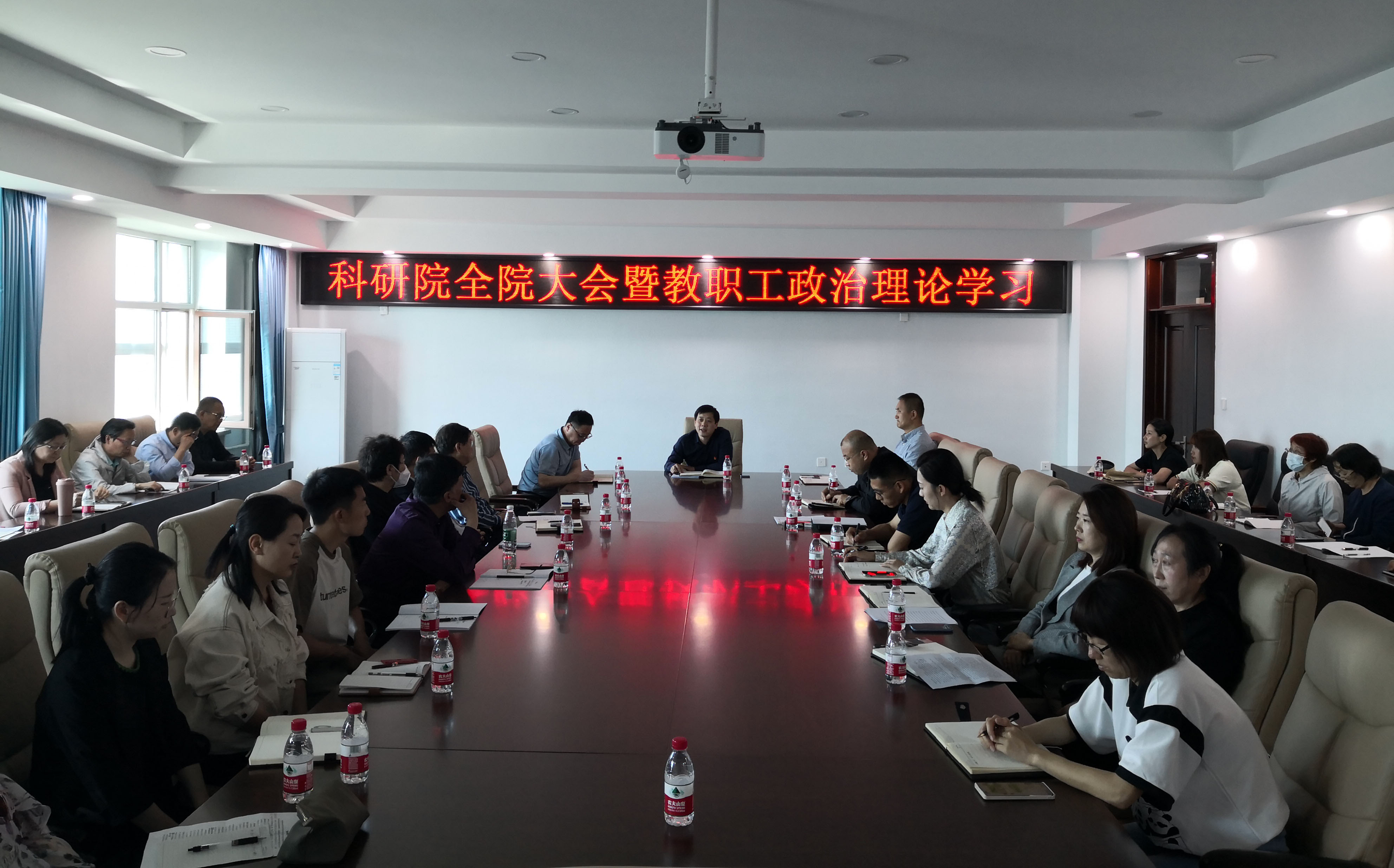 5月30日下午,为深入学习贯彻习近平新时代中国特色社会主义思想,筑牢教职工思想根基,科研院于综合办公楼908会议室召开全院大会暨教职工政治理论学习,会议由院长于海鹏同志主持,科研院全体教职工参加会议。