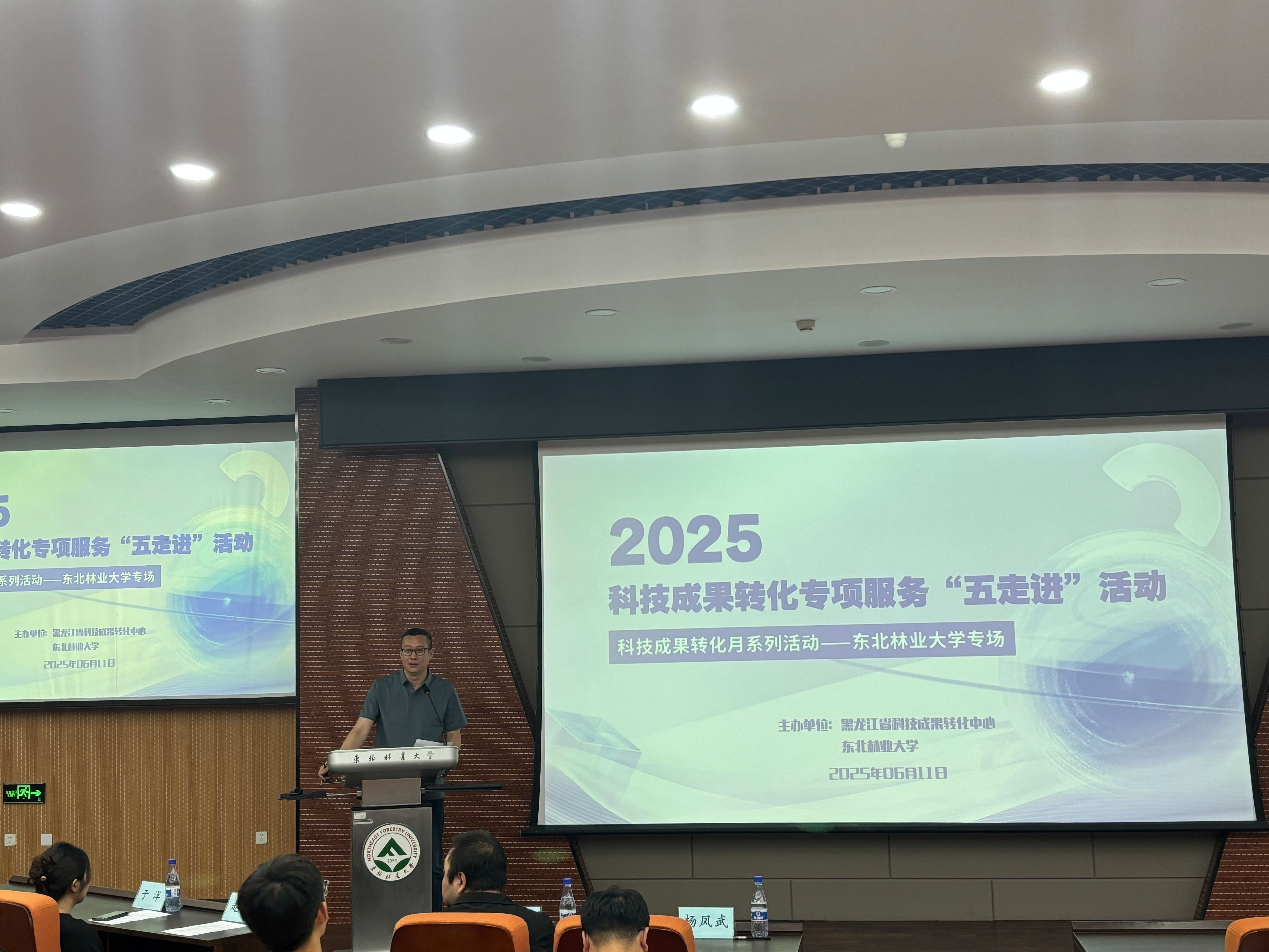 6月11日,黑龙江省2025年科技成果转化月系列活动—东北林业大学“五走进”专场活动在东北林业大学奥林学院101会议室举行。本次活动由黑龙江省科学技术厅主办,黑龙江省科技成果转化中心和东北林业大学承办。来自东北林业大学的科研项目负责人、拟签订技术合同的科研人员、科研助理以及科研管理人员等110余人参加本次活动。
