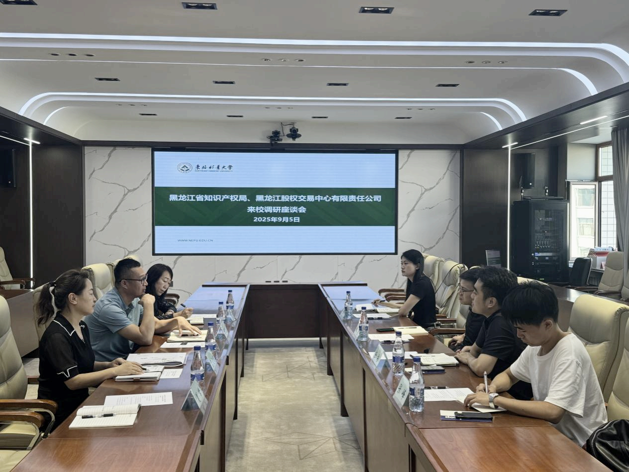 9月5日,黑龙江省知识产权局携手黑龙江股权交易中心围绕推进专利成果转化、知识产权运用工作等主题来校调研交流。省知识产权局运用促进处朱隆、省股权交易中心总经理任浩、学校科研院副院长杨凤武等相关工作负责人员参加了座谈会。