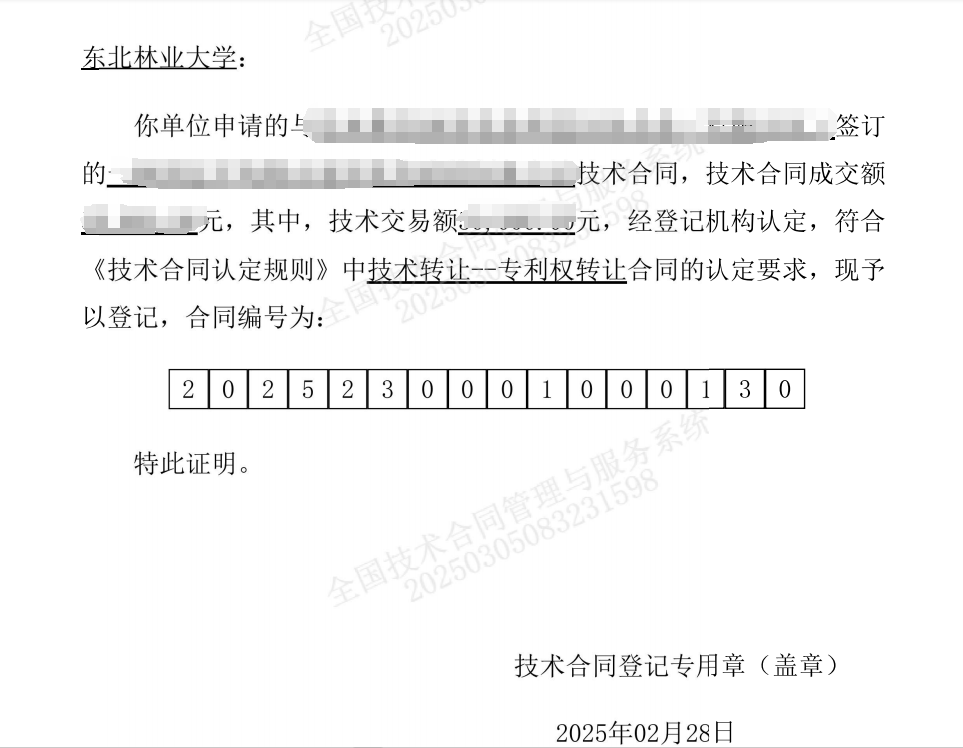 技术合同登记证明示例